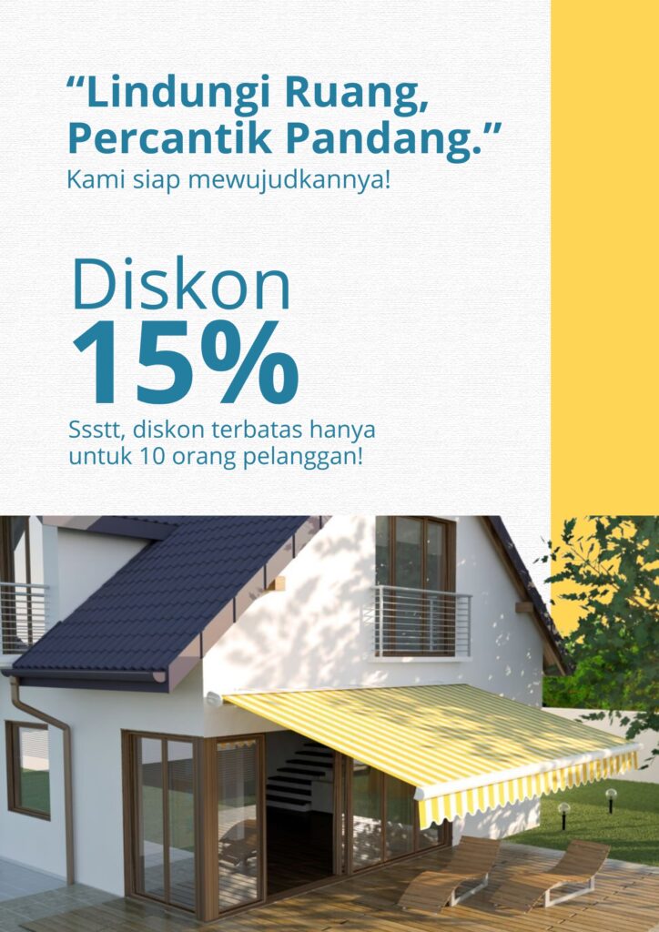 Awning gulung modern ini memberikan perlindungan maksimal dari panas dan hujan sekaligus menambah estetika hunian atau bisnis Anda.